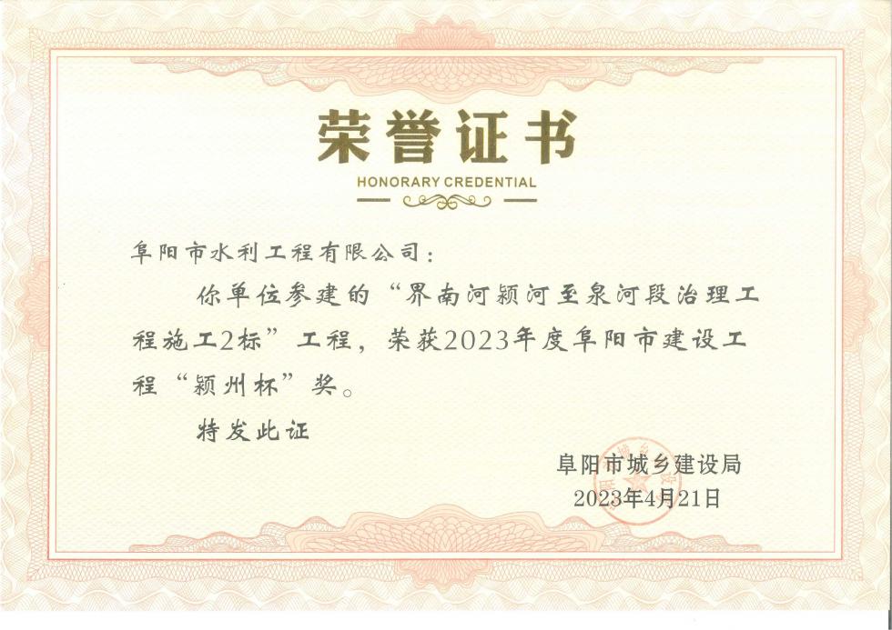 2023年度阜陽市建設(shè)工程“潁州杯”獎